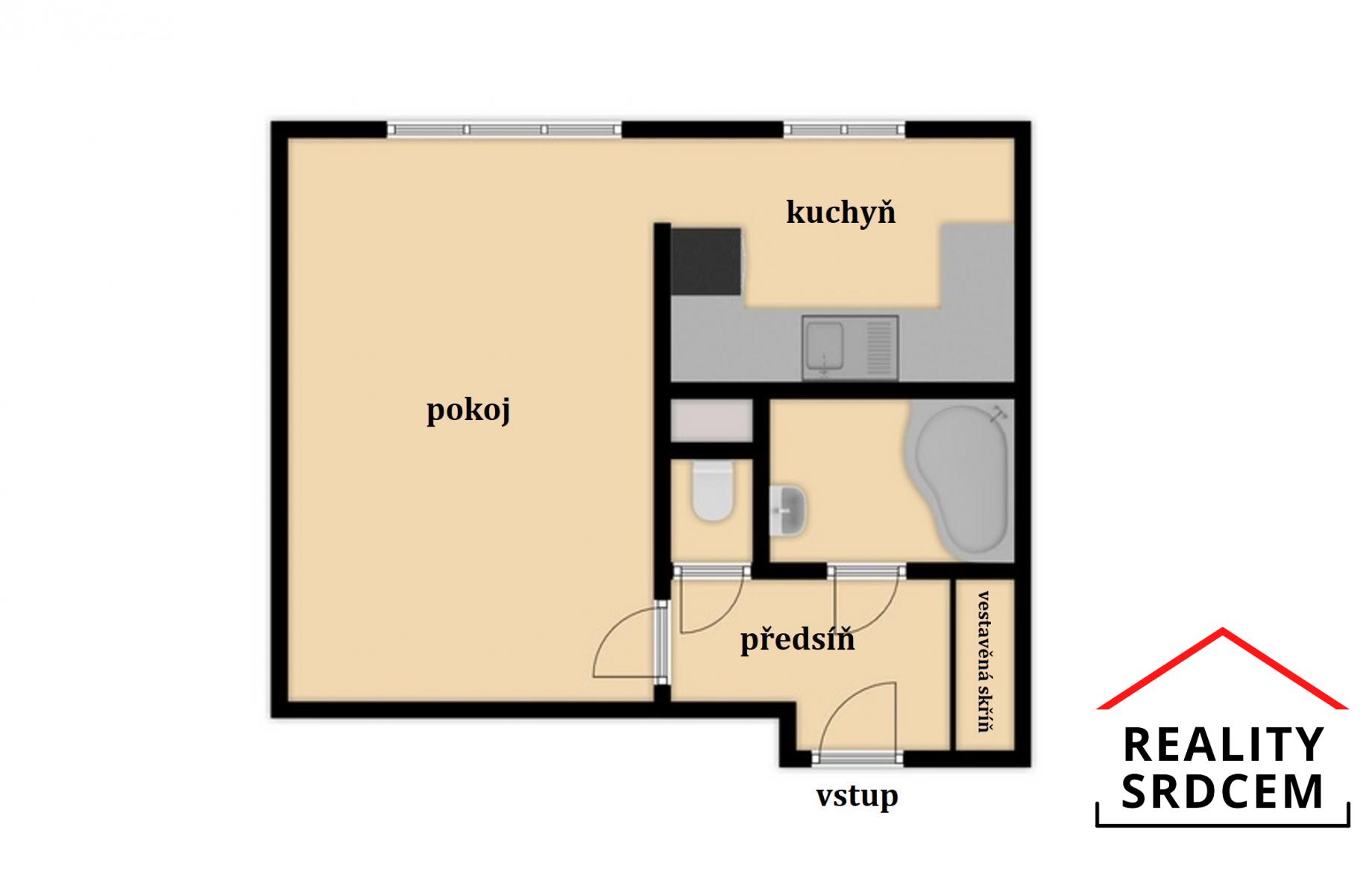 Jedná se o byt 1+1 v os. vl., o užitné ploše 32 m2 + sklep, který se nachází ve 2. patře / 6 zatepleného panelového domu.