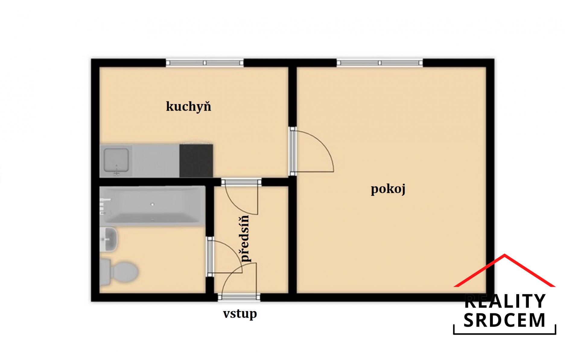 Jeho dispozice se sice řadí mezi ty menší, ale dobře řešené z důvodu uspořádání místností.