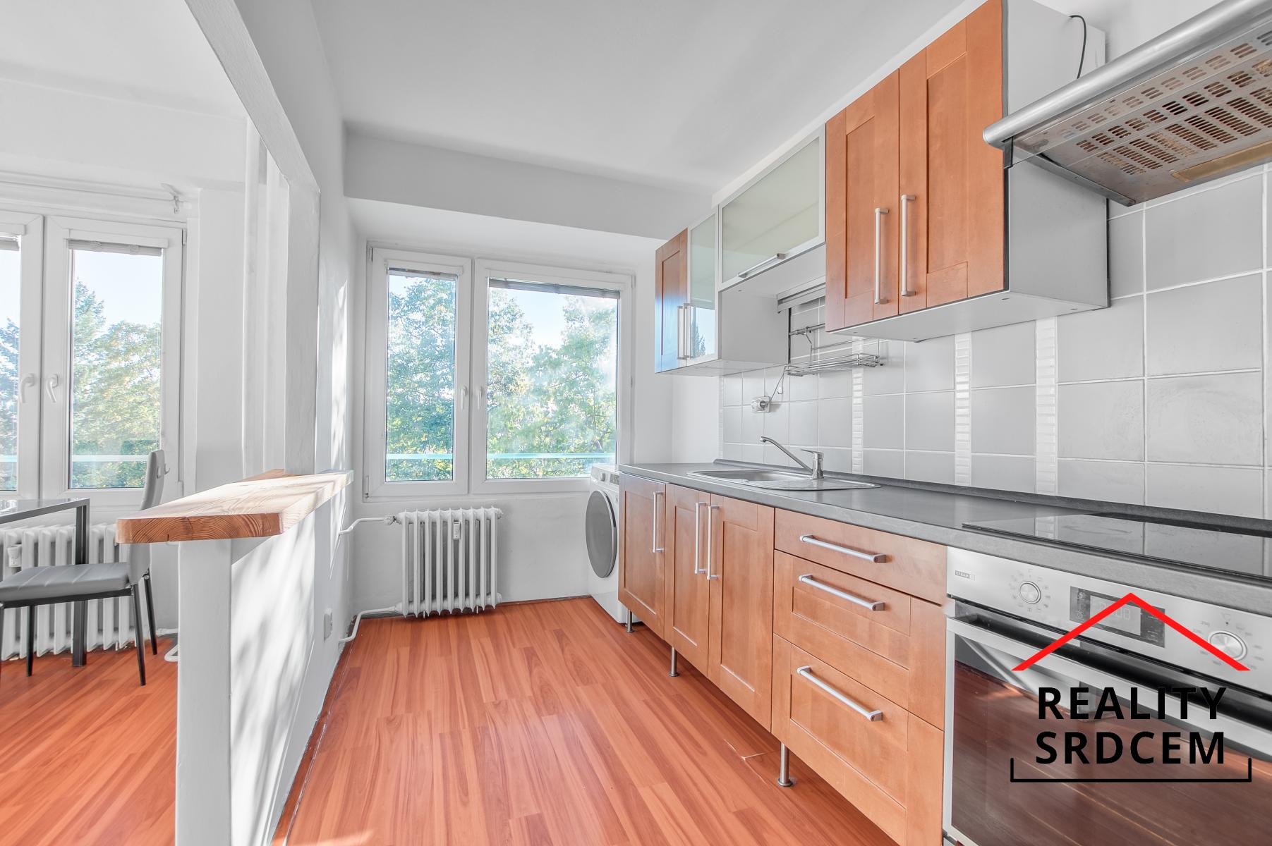 K vybavení patří kuchyňská linka s uvedenými spotřebiči. Dále zde může zůstat pračka, případně se byt může pronajmout i nezařízený. Součástí pronájmu je také sklep.