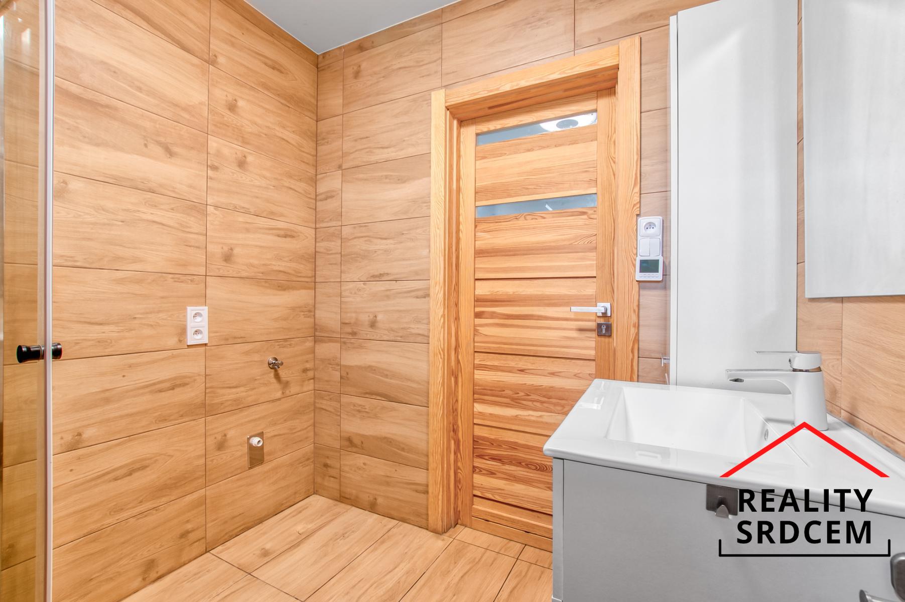 Podlahová krytina byla položena v kombinaci plovoucí podlahy, vinylu a dlažby. V celém domě je podlahové elektrické vytápění s individuálním nastavením teploty pro jednotlivé pokoje (wi-fi systém). Ohřev vody pak zajišťuje el. bojler (wi-fi systém).