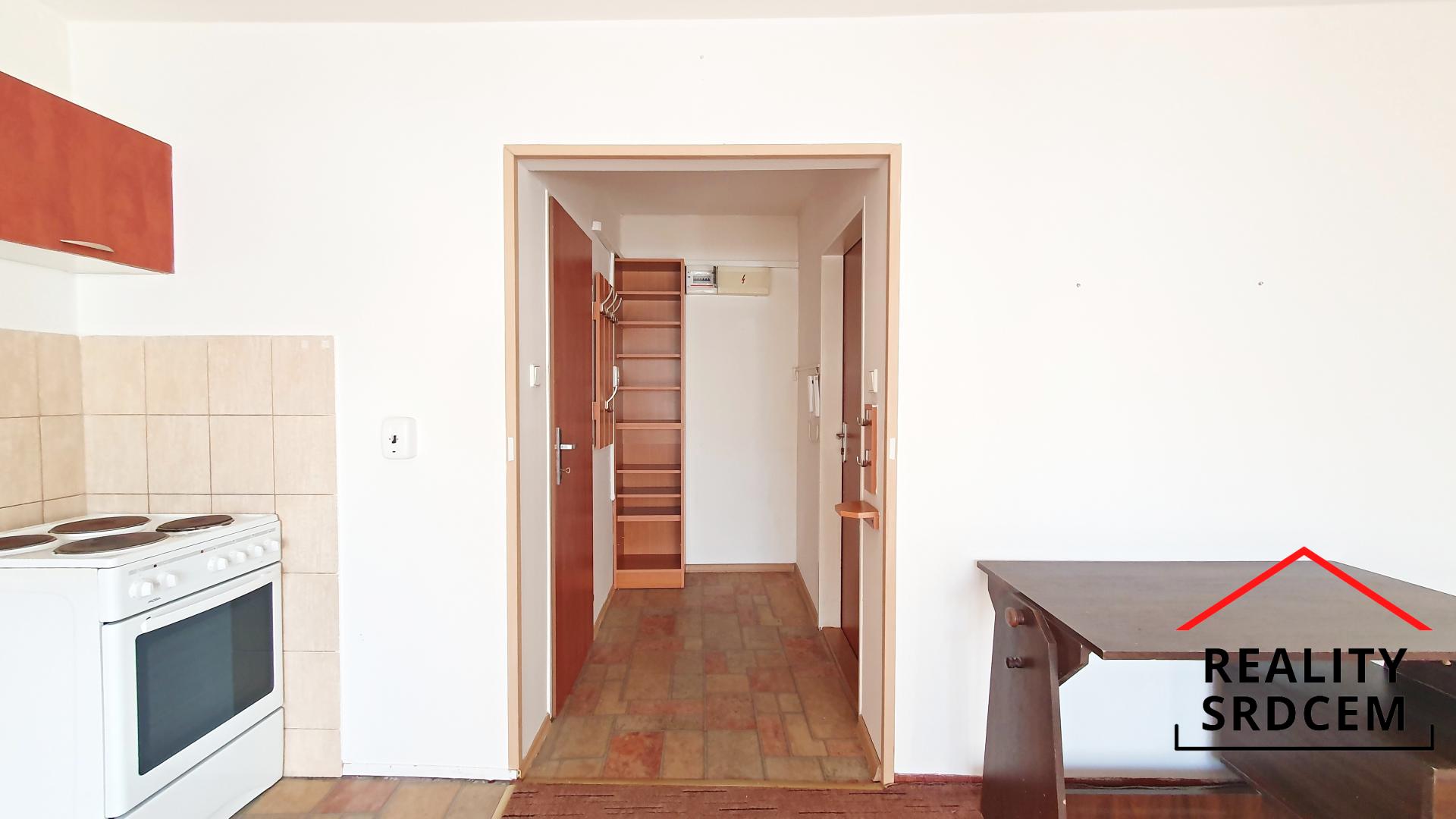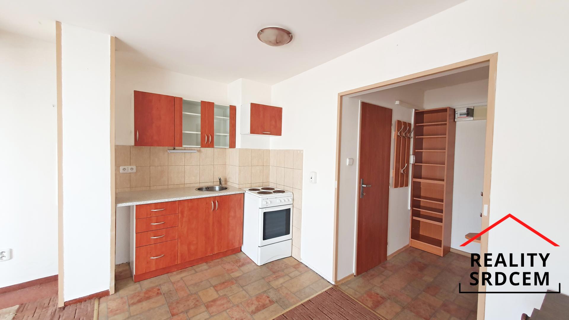 K vybavení patří kuchyňská linka s el. sporákem, policová skříňka a věšáková sestava. Dále zde může zůstat psací stůl. Součástí pronájmu není sklep.