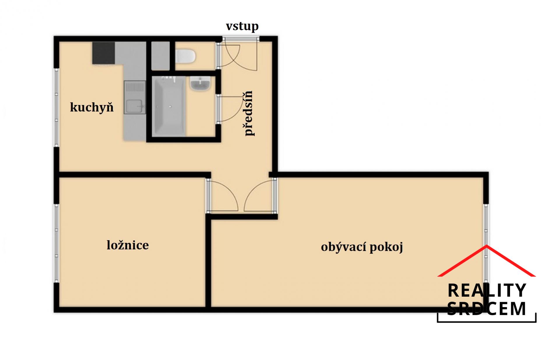 Jeho dispozice se řadí mezi ty velmi dobře řešené z důvodu velikosti obou pokojů, které jsou navíc neprůchozí. Jako benefit můžeme označit výklenek v obývacím pokoji, který může sloužit jako jídelna, pracovna nebo komora.