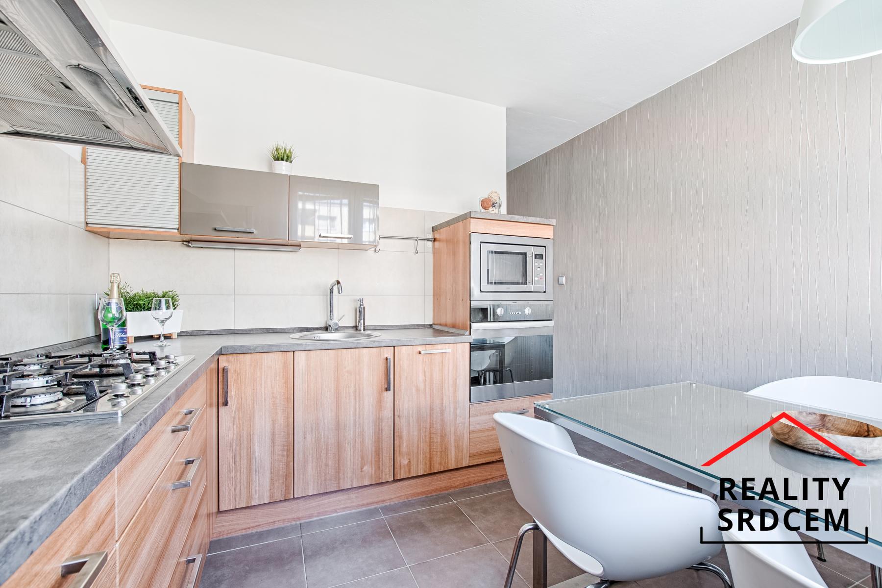 V bytové jednotce již proběhla celková rekonstrukce, při které byla dodána kuchyňská linka vyrobená na zakázku s vestavěnými spotřebiči (myčka, el. trouba, mikrovlnka a varná deska), vyměněna elektroinstalace, položena podlahová krytina v kombinaci plovoucí podlahy a dlažby, došlo k modernizaci koupelnového jádra, byly pořízeny interiérové a vstupní dveře a byla vybudována šatna v předsíni. Samozřejmostí jsou už plastová okna, která jsou orientována na jihozápadní a severovýchodní stranu. Byt celkově působí moderním a pěkným dojmem.